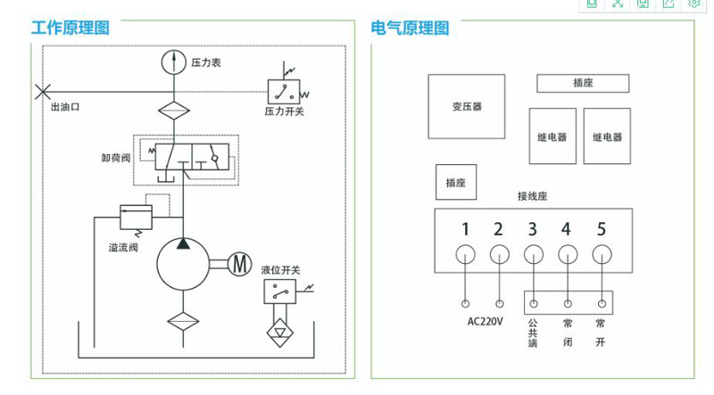1、公称压力为1.5-1.8Mpa,设有溢流阀,防止油泵超负荷工作;